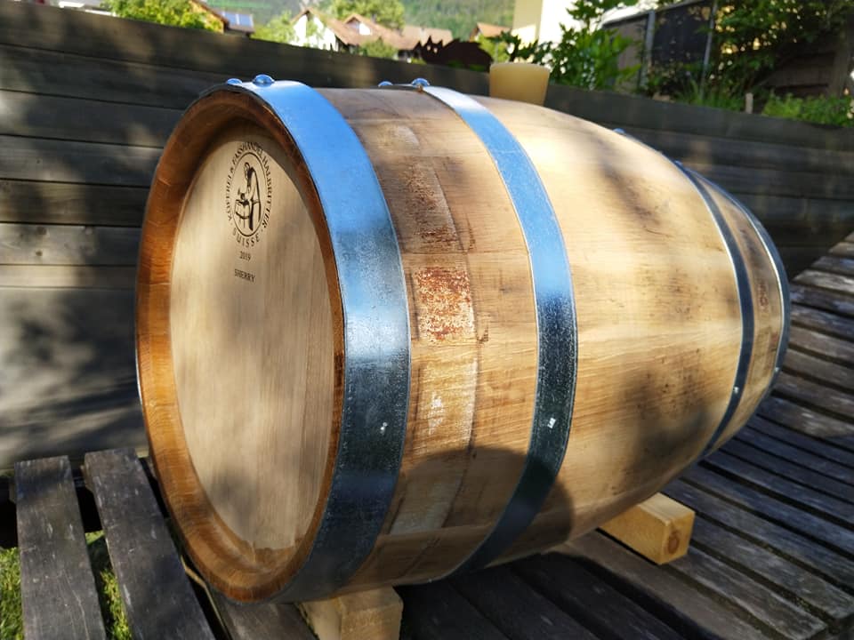 Der Brand wird in ein 50l-Sherryfass abgefüllt.